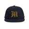 14's 高密度トゥール生地を使用したクラウンが深い6-Panelパターン。old english M ロゴを刺繍で表現。ブリムは平らですがスタイルに合わせてカーブチョップでカスタマイズ可能。アンティークカラーのバックルを使用したサイズアジャスト。
